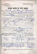Личный листок по учету кадров для работников театров заполнен Мусой Джалилем для предъявления в Татарский обком ВКП (б) вместе с характеристикой и автобиографией, в связи с ходатайством руководства Татарского государственного оперного театра о награждении поэта почетной грамотой. В документе даны краткие ответы на 37 вопросов биографического характера за период с 1906 г. по 1939 г., в том числе о месте и дате рождения, национальности, социальном происхождении и основном занятии родителей до и после Октябрьской революции, основной профессии к моменту вступления в партию, социальном положении, партийности, принадлежности к другим партиям и оппозиции, членстве в профсоюзной организации, образовании, наградах, пребывании за границей, о выполняемой работе за последние 10 лет с указанием оклада, знании иностранных языков, службе в армии, участии в Гражданской войне, службе в войсках или учреждениях белых правительств, нахождении на территории белых, отношении к военной службе, партвзысканиях, результатах прохождения партчистки, семейном положении, и др. Отвечая на вопрос «кто из руководящих работников театров может дать деловую характеристику по прежней работе», М. Джалиль указал следующие имена: «Ф.Н. Каверин директор и худ. рук. Московского драм. театра. Б.С. Арканов директор Киевского оперного театра. Бакиров режиссер Башкирского оперного театра». Это свидетельствует об обширных связях М. Джалиля среди театральной и музыкальной общественности страны, сложившихся у него в период работы заведующим литературной частью Татарской оперной студии при Московской государственной консерватории в 1935-1938 гг. Упомянутый выше Ф.Н. Каверин (1897-1957) в 1936-1943 гг. являлся директором и художественным руководителем Московского драматического театра, с 1925 г. вел педагогическую работу в студии Малого театра, ГИТИСе и др., внес большой вклад в становление и развитие Татарского государственного оперного театра. Дополнительных сведений о Б.С. Арканове и К.Г. Бакирове нет. В конце документа указан постоянный адрес проживания поэта «г. Казань, Поле Ершова, 2/1, кв. 19». В цитатах, приведенных из документа, сохранена орфография автора.