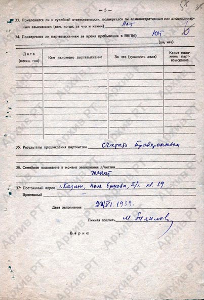 Центральный государственный архив историко-политической документации Республики Татарстан. Автограф.