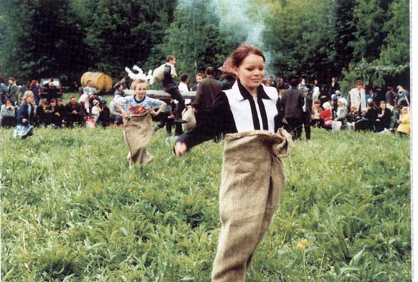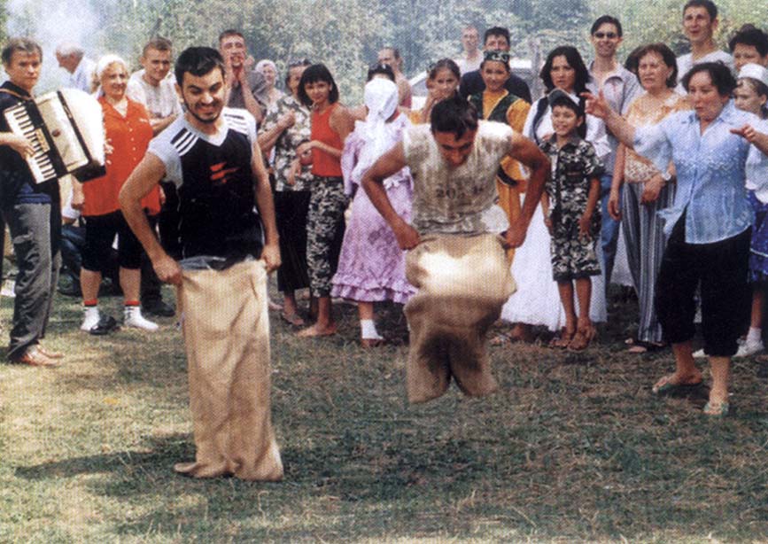Running in the sacks. Sabantui – 2001 in Kichkaljnia village of Nurlatsky area of the Republic of Tatarstan